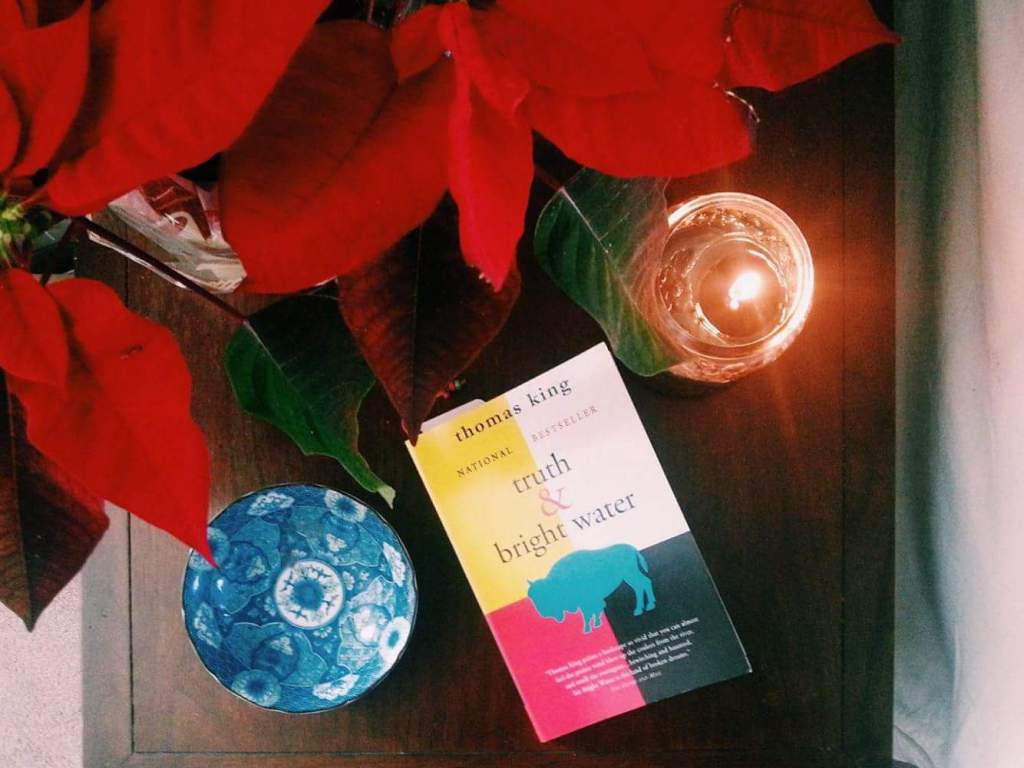 Needless to say, I had to buy some of his fiction and then immediately put it away until exams were over but waiting only made it cracking it open for the holidays sweeter. Truth & Bright Water follows Tecumseh, a young man living in Truth, which is across the border and river from Bright Water, a reserve in Canada. Tecumseh’s relationship with his family and neighbours perfectly captures the holiday experience as he navigates tensions between his parents, his cousin Lum’s tragedy, his misbehaving dog Solider, and finding work.