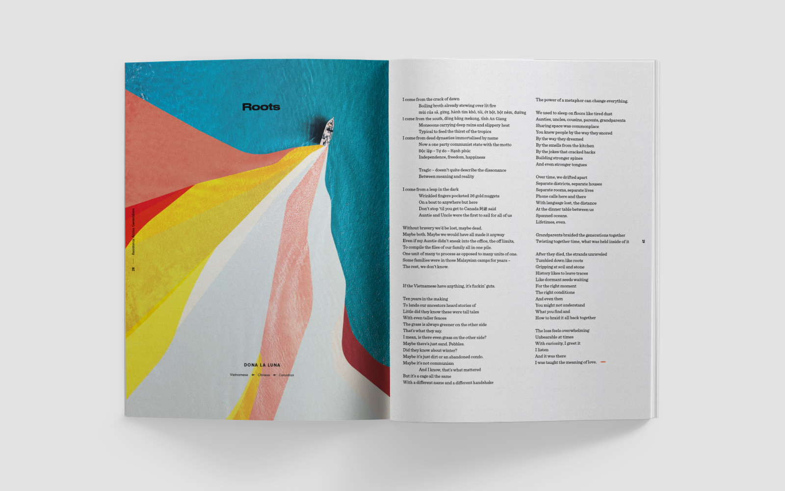 My short story “Hush, Nevermind” was published in Living Hyphen’s Issue 2.1 Resistance Across Generations anthology. This was a fictional story inspired by the life of my grandmother Ruby Chung and her immigration story from China at the age of 18 to Jamaica, where she was originally born, and eventually on to Canada in the ’70s. I originally told the story as part of an open mic event run by Living Hyphen and was graciously supported by their editorial team in bringing this piece to life.